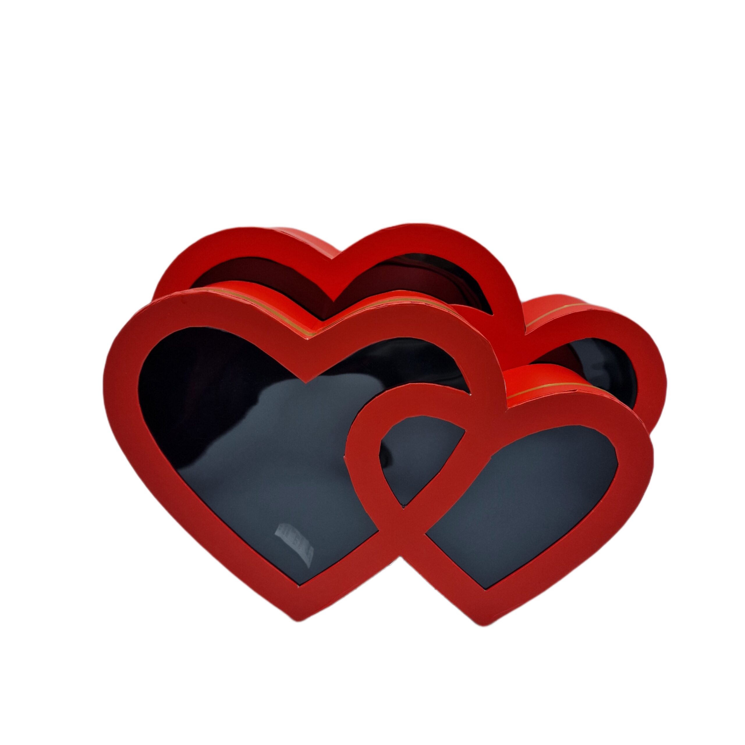 Cutii carton roz inima 3 dimensiuni diferite. Dimensiuni: 38 cm x 25 cm x h 11,5cm; 33 cm x 22 cm x h 9,5 cm;