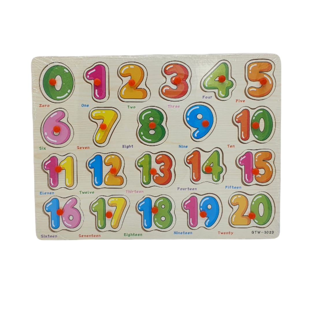 Puzzle din lemn cifre, usor de asamblat, cu diferite imagini si diverse culori. Se recomanda copiilor intre 2-6 ani. Dimensiuni: 30 cm x 22.5 cm x 0.4 cm.